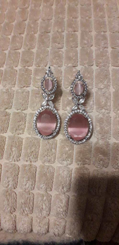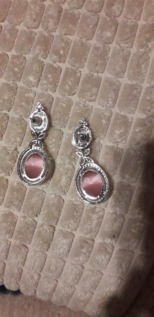 Красивые серьги. Сделаны аккуратно. Размером великоваты для повседневной носки. Идеально подойдут для торжественных мероприятий. А так же можно носить, если прическа сильно перекрывает более мелкие украшения. Камень полупрозрачный, цвет пыльно-розовый. На фото розовее, чем в реальности. Есть эффект кошачьего глаза, который практически нивелирован огранкой, но при попадании света камень как бы подсвечивается изнутри и имеет перламутровый серебристый отлив( который видно на фото сайта. В реальности блик перемещается в зависимости отпадения света).