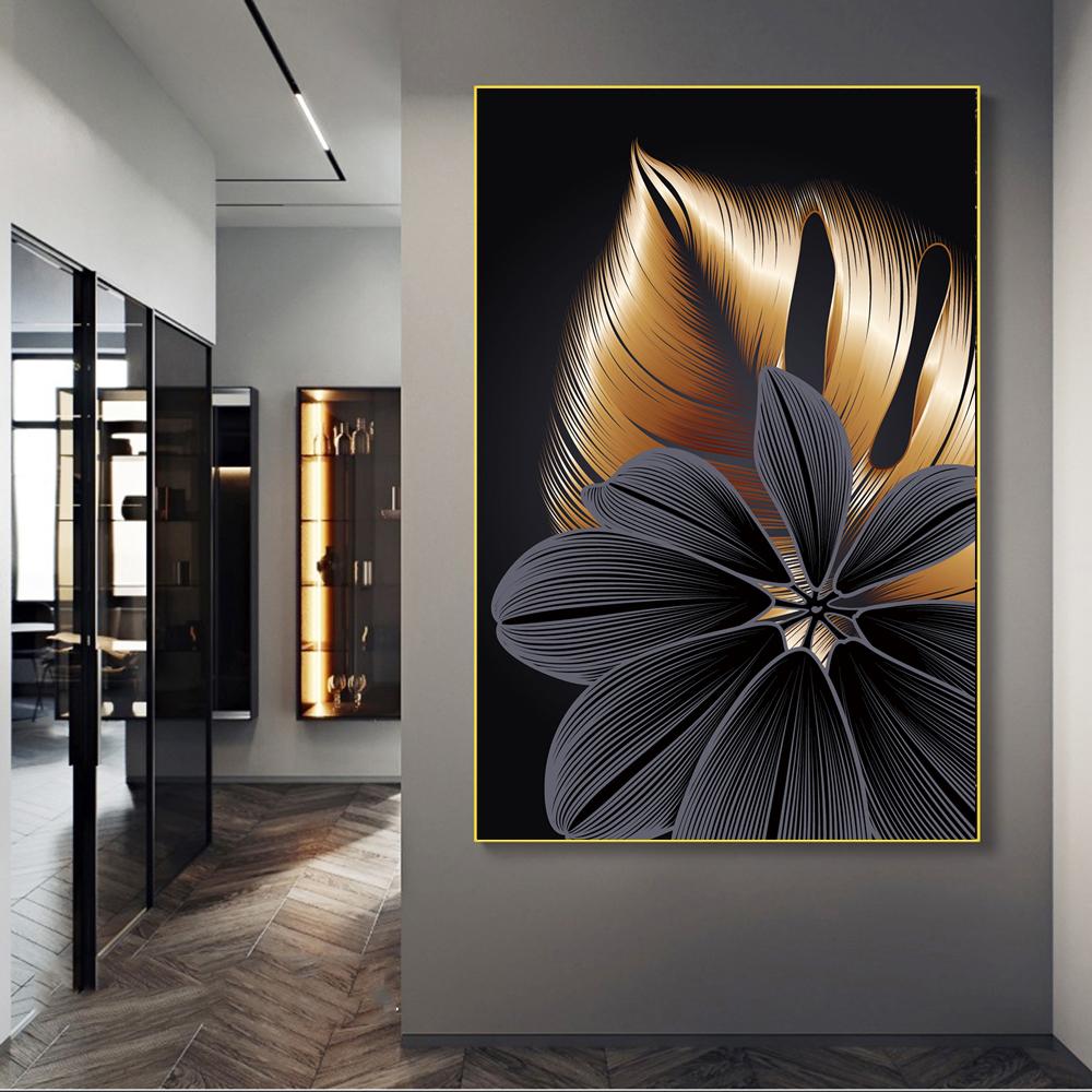 Золотой Черный Лист Искусство Печать на Холсте Картина Современный Минималистский Абстрактная Настенная Картина Скандинавская Гостиная Украшения Дома Плакат