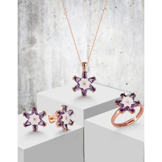 Комплект ювелирных изделий из стерлингового серебра 925 пробы с перламутровым фиолетовым цветком лотоса