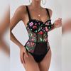 Новый сексуальный фрагментированный боди с цветочной вышивкой и перспективным деревянным ушным краем