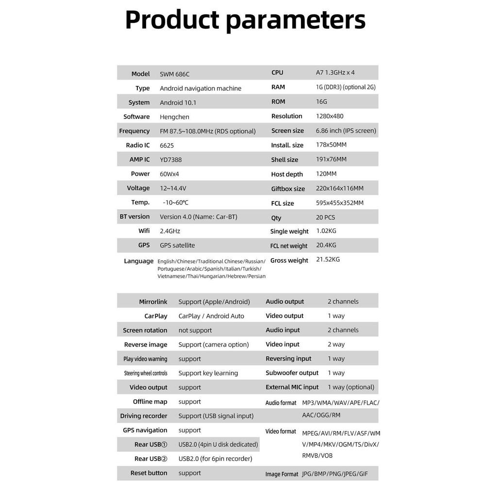 1. Хозяин 2. GPS-антенна 3.16P кабель питания 4. Кабель RCA 5. Обратный видеовходной кабель 6. USB-кабель * 2 7. инструкции