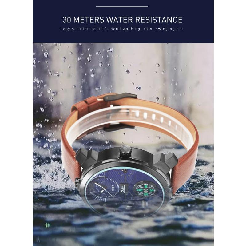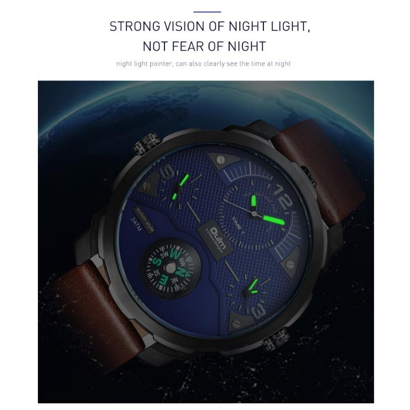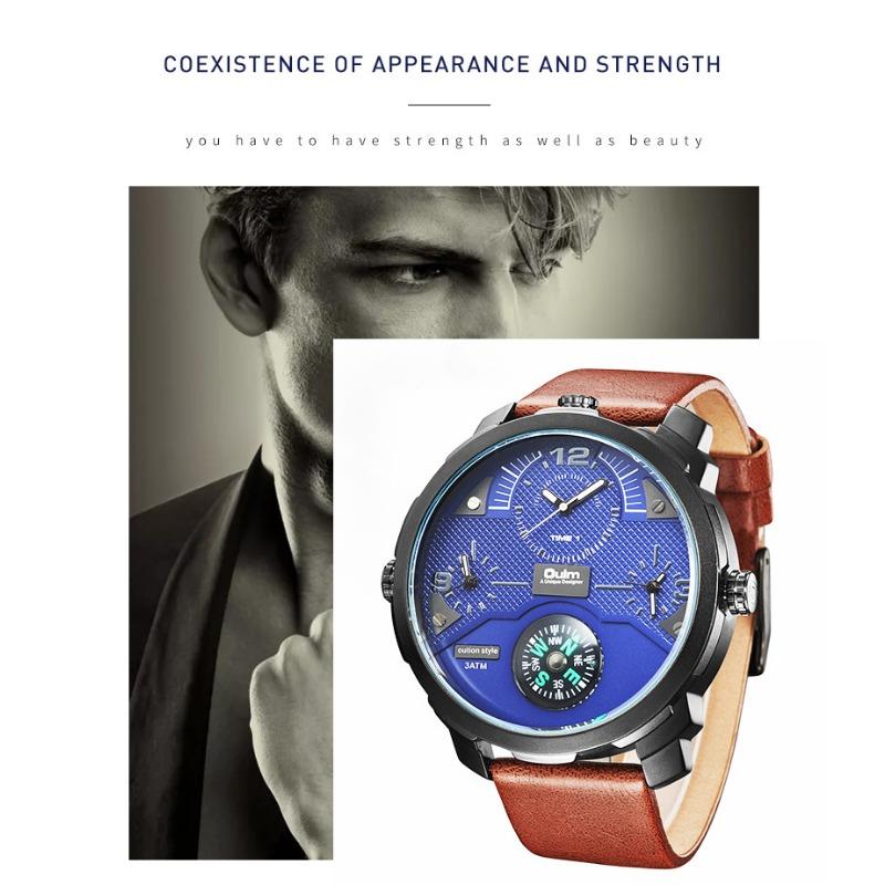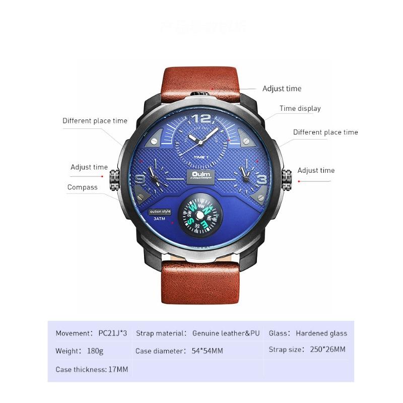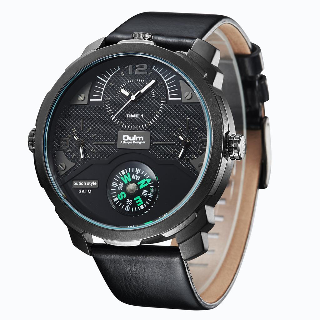 Oulm Мужские кварцевые часы Leisure Trend с большим циферблатом и компасом, часы с несколькими часовыми поясами