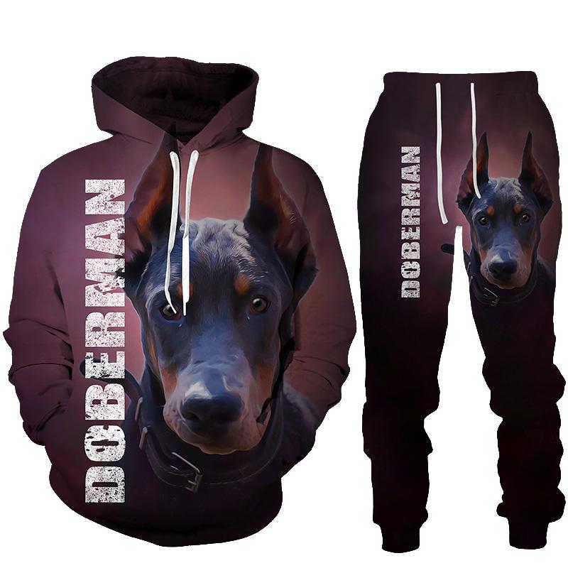 Весенне-осенние толстовки с 3D принтом добермана, спортивные штаны, мужская толстовка с капюшоном, комплекты из 2 предметов, спортивная одежда, спортивный костюм, мужская одежда, костюм