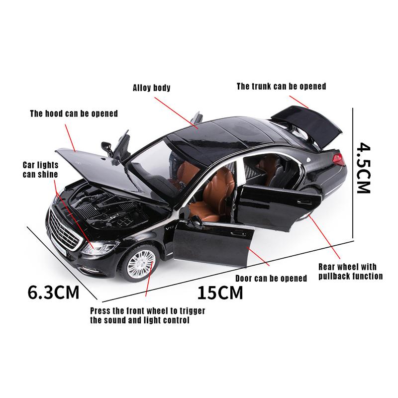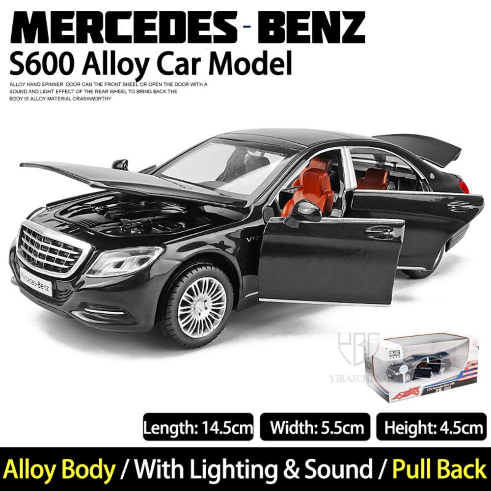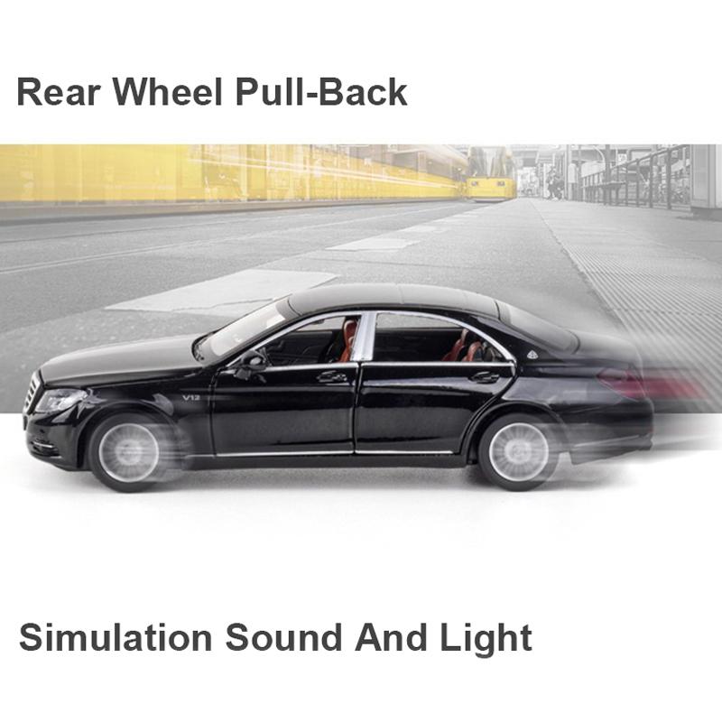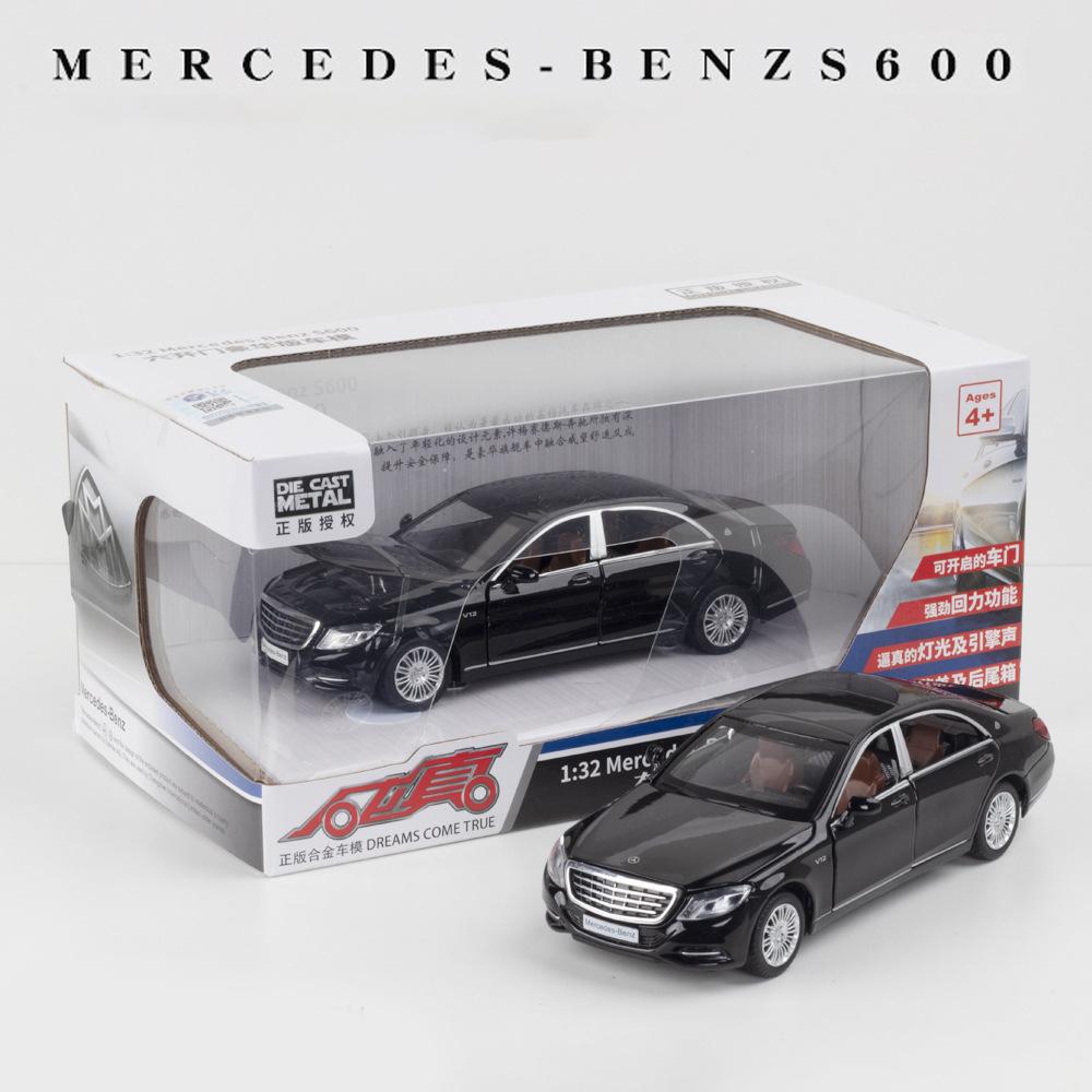 Масштаб 1/32 Benz S600, литая под давлением модель автомобиля, игрушечный автомобиль с откатным механизмом, звуком и светом для детей, коллекция подарков для мальчиков и девочек