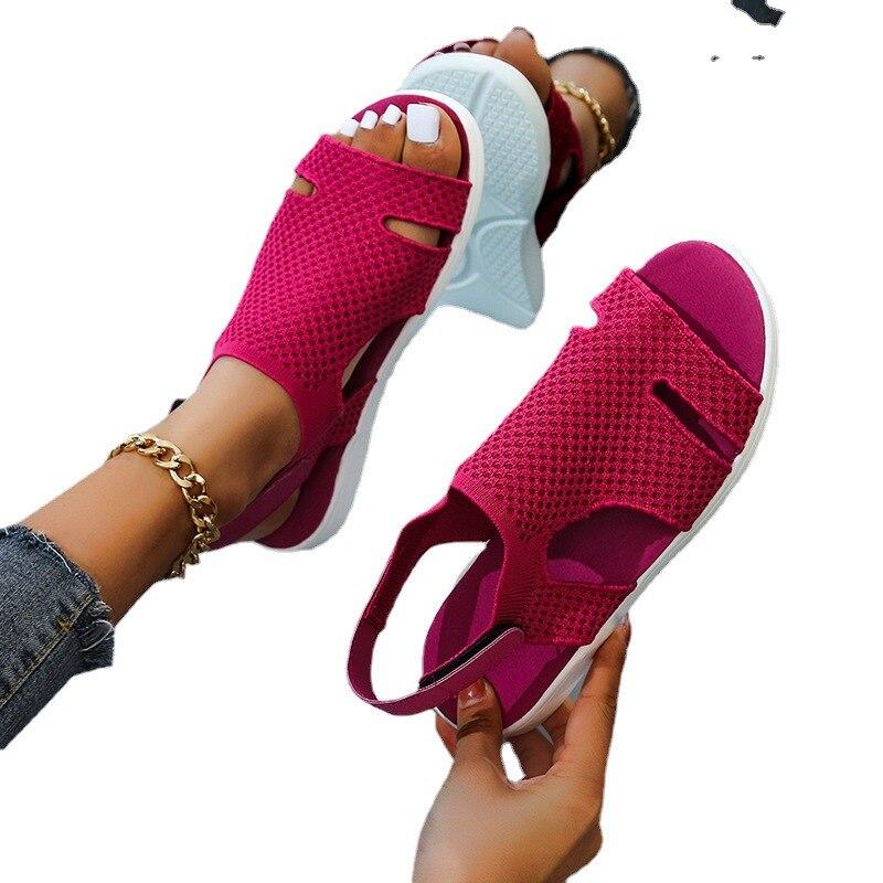Сандалии женские новые женские со стразами на плоской подошве с открытым носком женские модные сандалии с эластичной лентой женская летняя обувь обувь больших размеров