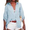 Женская летняя хлопково-льняная однотонная свободная рубашка с семиточечным рукавом и v-образным вырезом