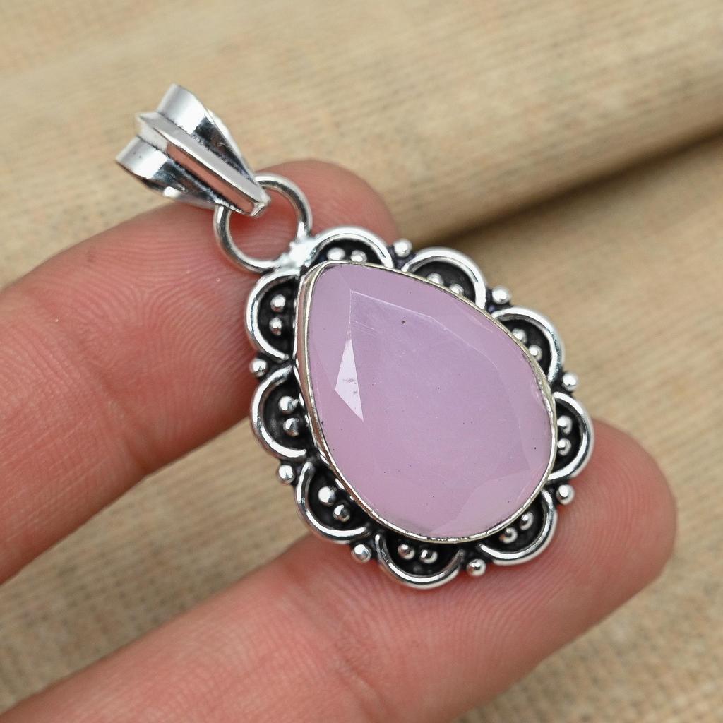 Розовый халцедоновый драгоценный камень ручной работы 925 пробы очаровательный кулон ювелирные изделия для нее