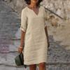 Женское летнее однотонное хлопково-льняное платье в стиле ретро с v-образным вырезом и длинными рукавами, легкое дышащее платье