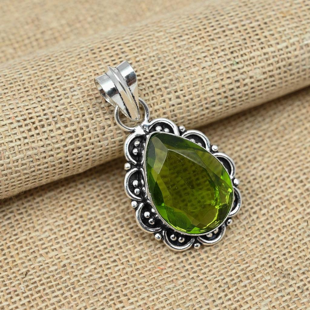 Зеленый перидот Gemstone 925 Твердый стерлинговый серебристый кулон ювелирных изделий ручной работы для подарков