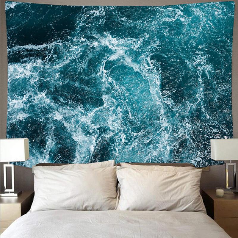 Синий океан волны гобелен закат облака природа искусство настенная ткань подушка фон одеяло Бохо домашний декор