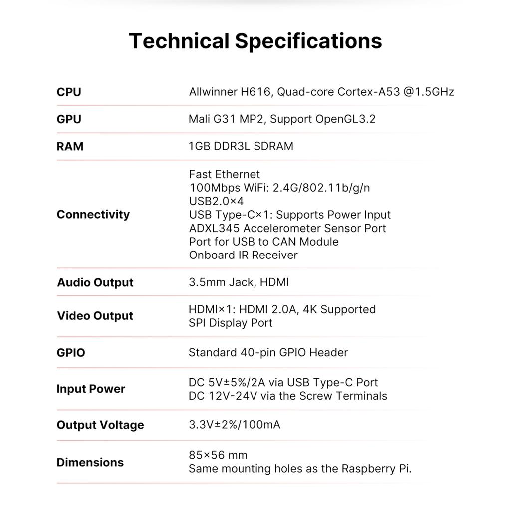 Этот продукт оснащен четырехъядерным процессором Cortex-A53 и 1 ГБ памяти DDR3L SDRAM, а также поддерживает 4K-дисплеи, что указывает на то, что он обладает достаточной производительностью для запуска различных приложений и задач, а также обеспечивает вывод видео высокой четкости.
