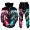 Красочный волк 3D принт толстовки костюм мужской повседневный пуловер толстовка брюки комплект из двух предметов крутая уличная одежда спортивный костюм для бега для пар