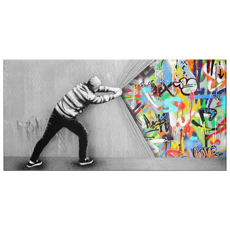 Граффити, настенные картины для гостиной, за занавеской, поп-стрит, холст, живопись, настенные художественные постеры и принты Quadros — купить товар онлайн с бесплатной доставкой по всему миру!