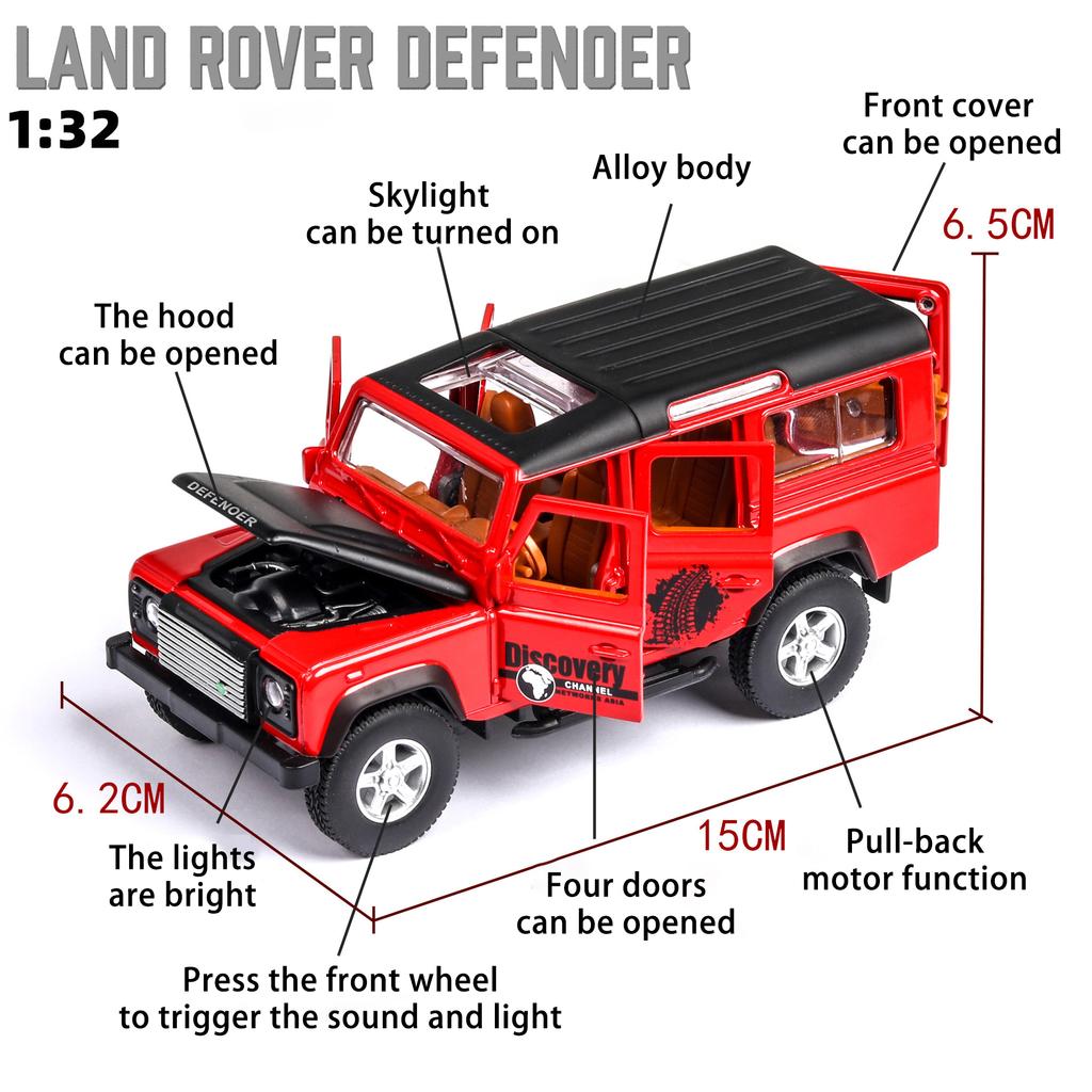 1/32 масштаб Land Rover Defender, литая под давлением модель автомобиля, игрушечный автомобиль с откатным механизмом, звуком и светом для детей, коллекция подарков для мальчиков и девочек
