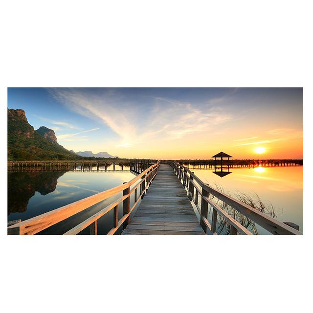 Мост заката, деревянный пейзаж с озером, постеры и принты, холст, картина, Куадрос, скандинавская настенная картина для гостиной