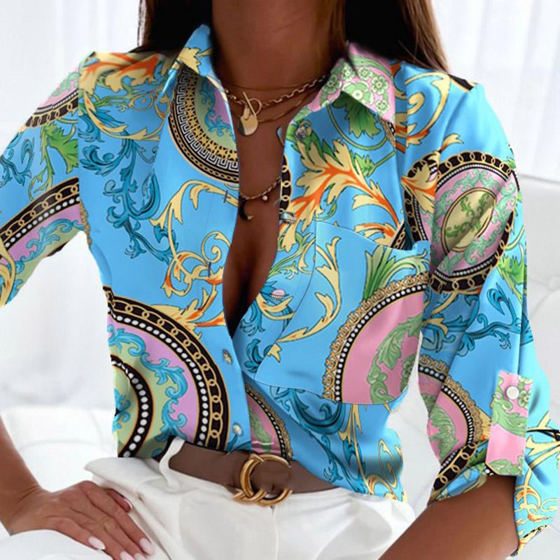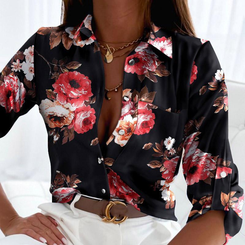 Весенне-осенняя женская рубашка с длинным рукавом и цветочным принтом