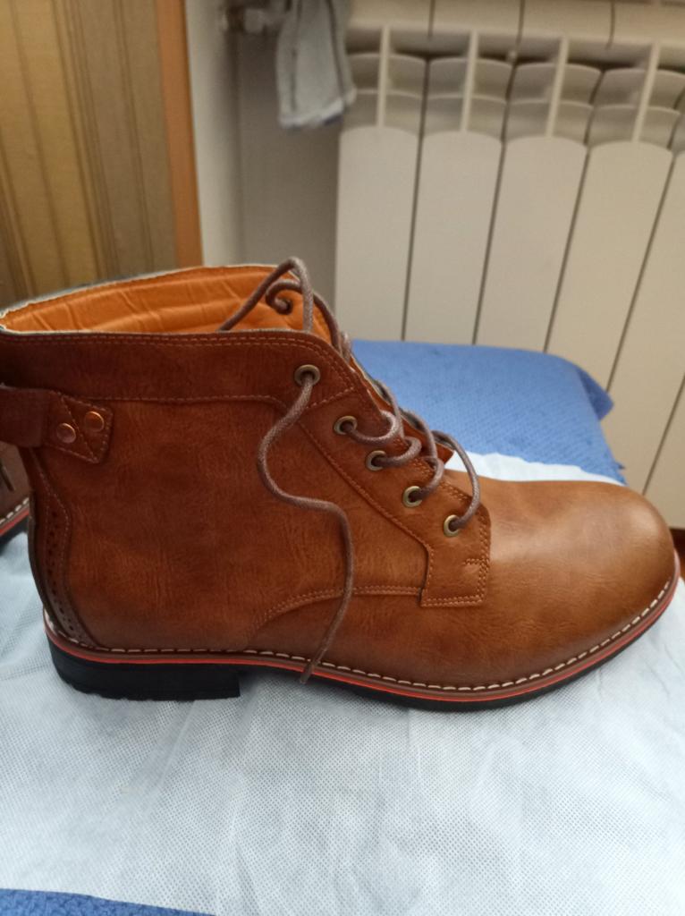 Получил ботинки, немного ошибся в размере, перестраховался взял 45 хотя ношу 43, в итоге чуть больше ваты но не критично, нужно брать на размер больше от вашего Пошиты качественно, лёгкие, такое впечатление что верх из бумаги, даже похрустывает, посмотрим как будут в носке Есть специфический запах На ноге сидят комфортно, ни где не трёт ни давит В принципе покупкой доволен, носить буду с удовольствием, что вам и желаю