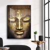Черная статуя медитирующего Будды, настенная живопись, печать на холсте, картины на холсте, буддийские картины для украшения дома