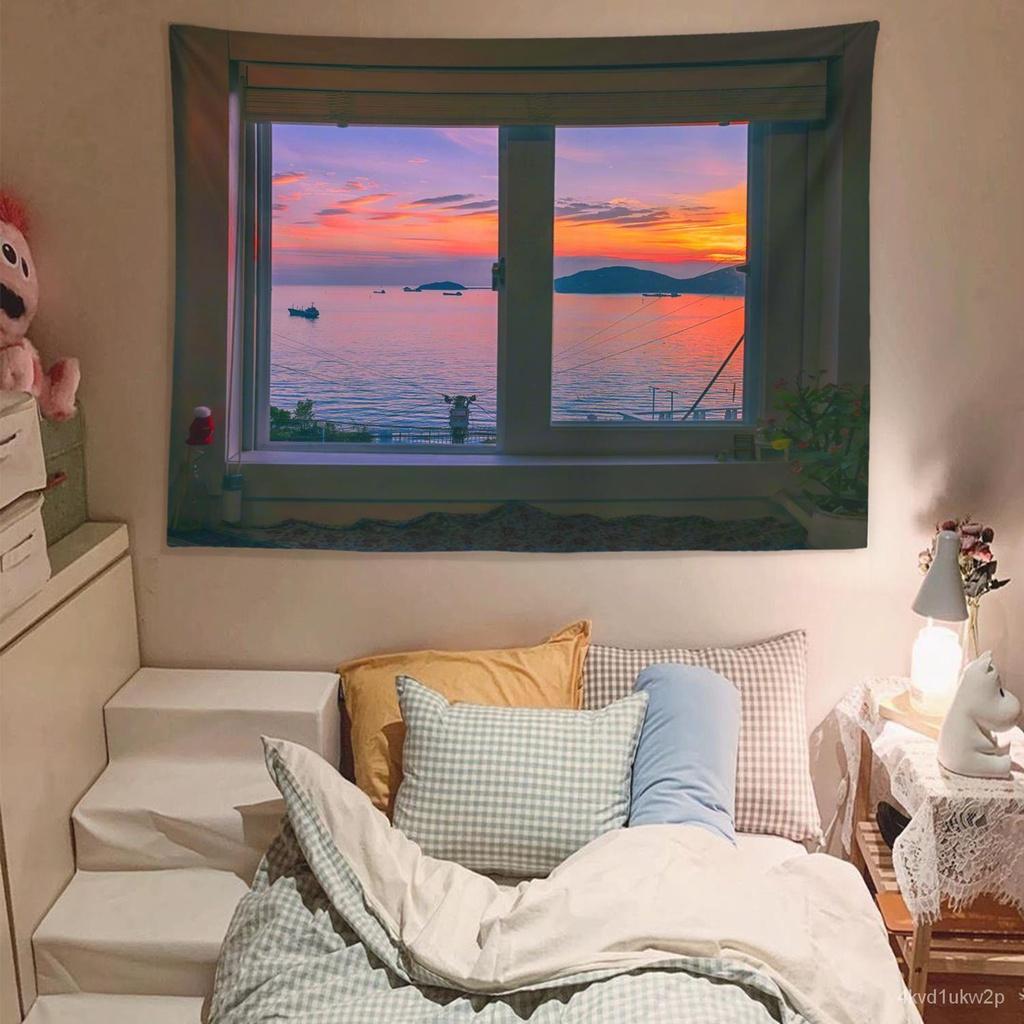 Украшение дома гобелен, настенный подвесной фон из окна с видом на море, бугер, свежая спальня, прикроватная тумбочка, украшение для проживания в семье