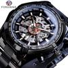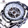 Forsining Стильные мужские модные повседневные полые синие гальванические автоматические механические часы