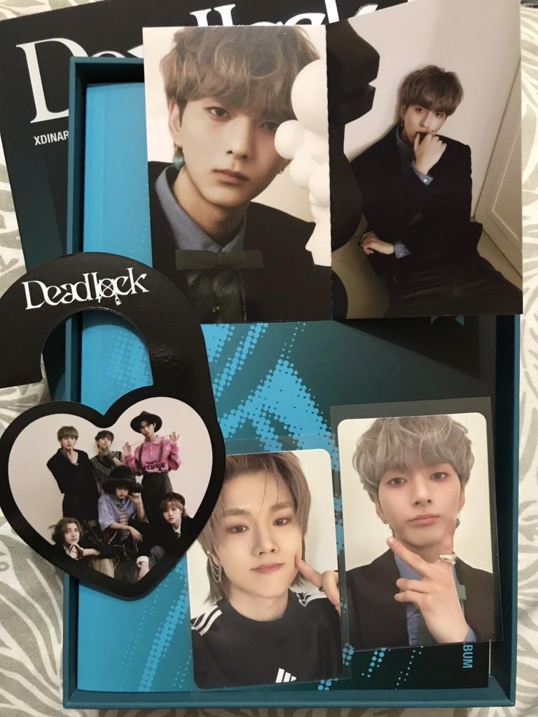 Заказывала у продавца сразу три сета разных альбомов этой группы, которые отправили одной посылкой. Заказ дошёл меньше, чем за 3 недели. В фиолетовой версии "Deadlock" очень повезло с биасом - обе карточки с Джуёном! 😍 Спасибо продавцу за подарок в виде набора карточек со всеми участниками!