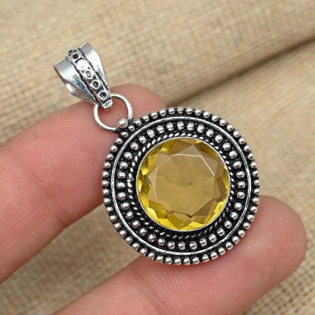 Цитрин Топаз Драгоценный камень 925 Твердое серебро Уникальные подвесные украшения ручной работы