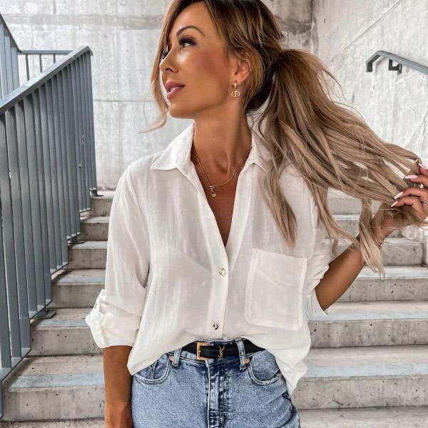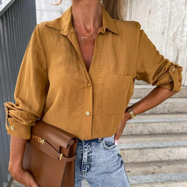 Весенне-осенняя однотонная свободная рубашка с рукавами и лацканами и пуговицами для женщин