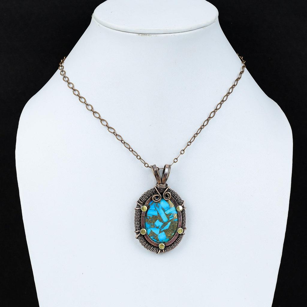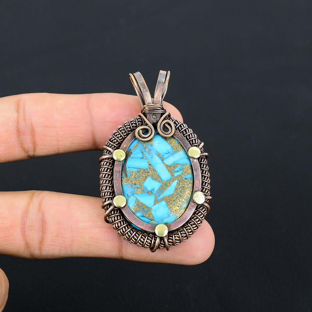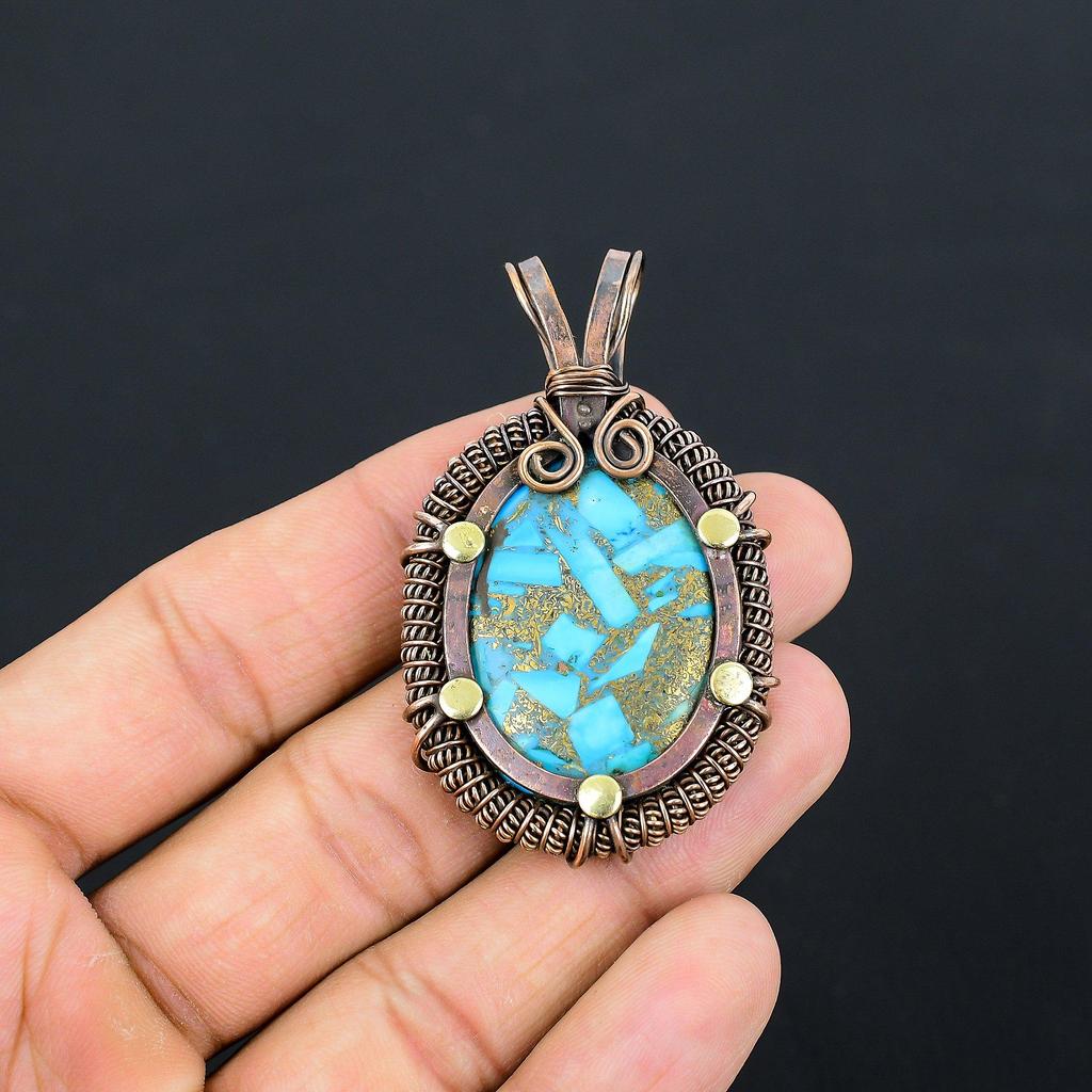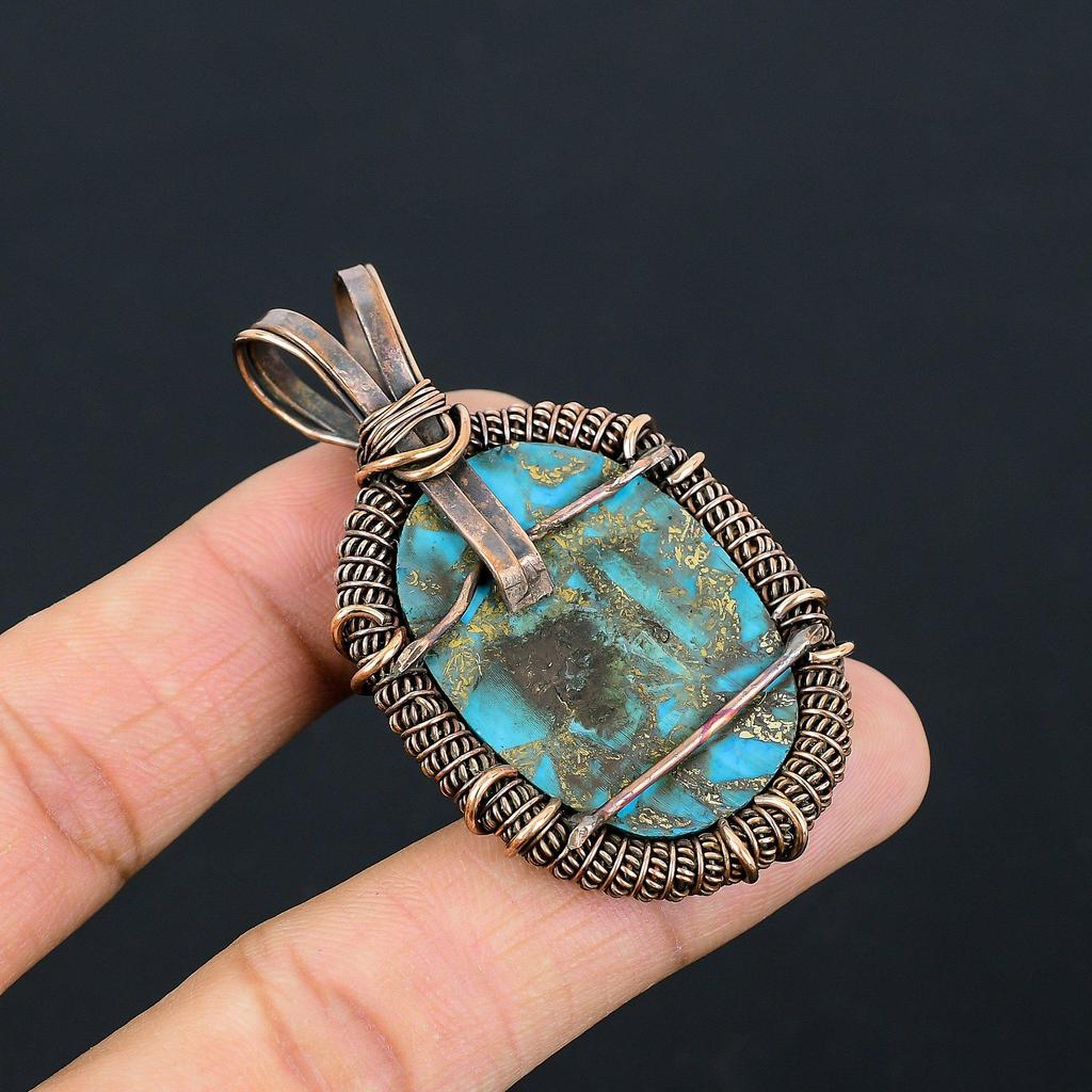 Медь, бирюзовый драгоценный камень, чистая медная проволока, обернутая подвеской ручной работы, ювелирные изделия
