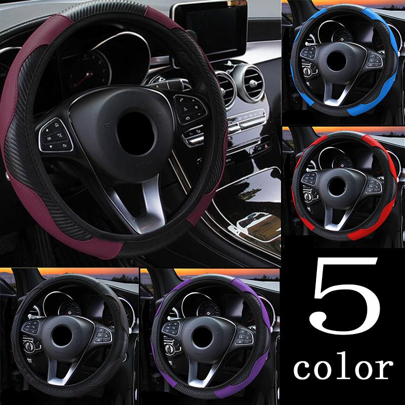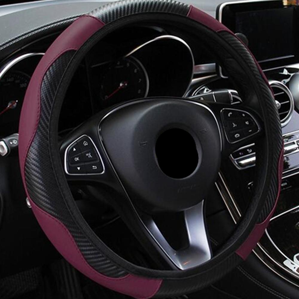 Универсальный автомобильный чехол на руль, дышащие противоскользящие чехлы на руль из искусственной кожи, подходят 37-38 см, украшение автомобиля, карбон