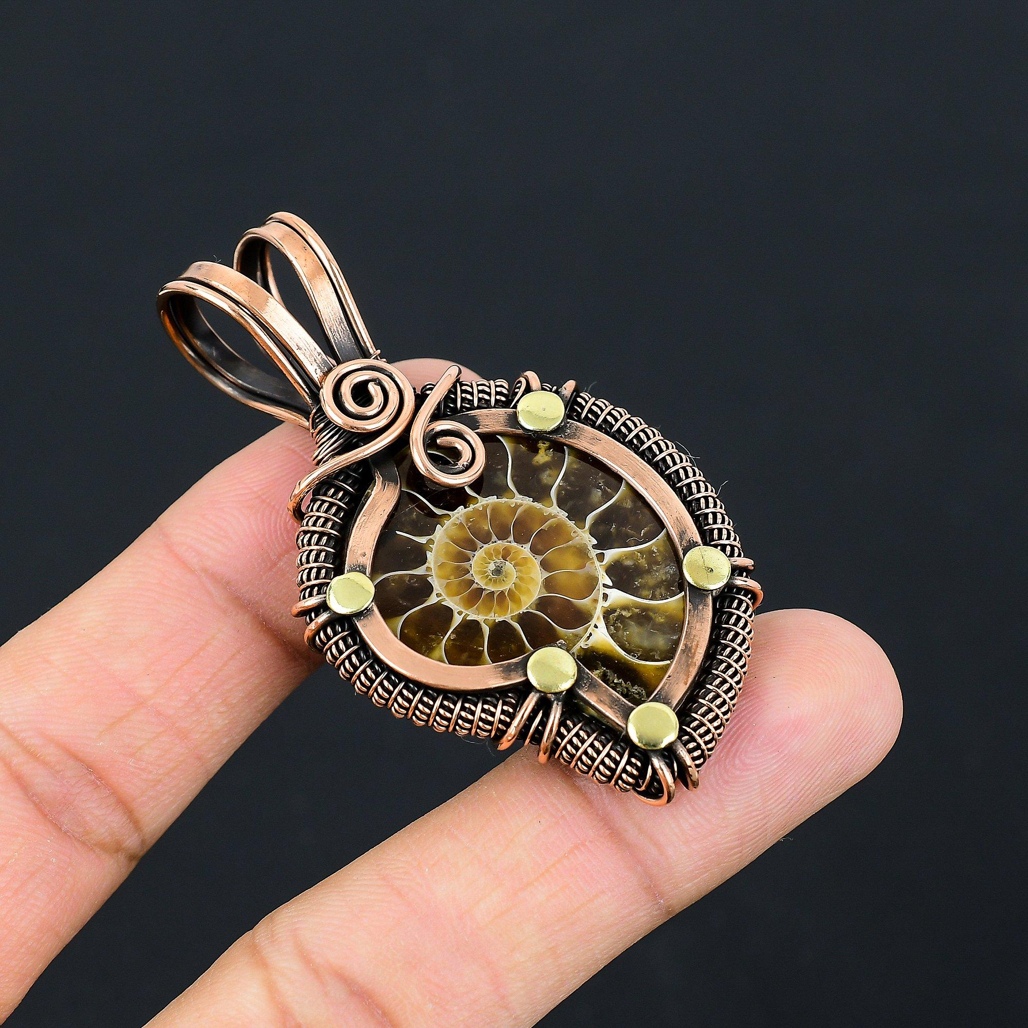 Аммонит Драгоценный камень Чистая медная проволока Обернутая ювелирная подвеска ручной работы — купить товар онлайн с бесплатной доставкой по всему миру!