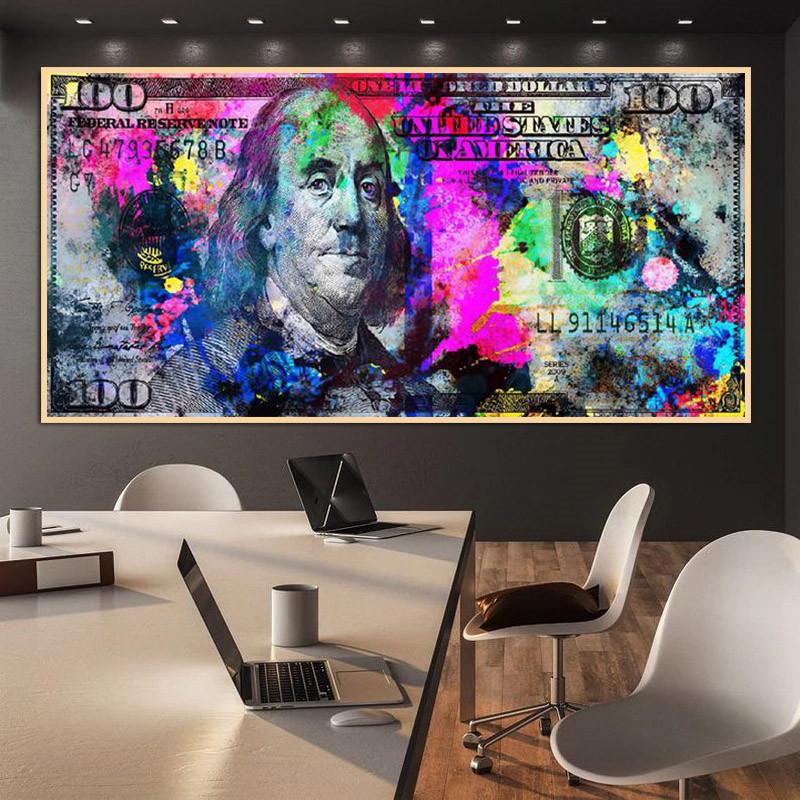 Вдохновляющие красочные 100 долларов плакат с принтом граффити наличные деньги холст картины спальня офис декор настенная картина