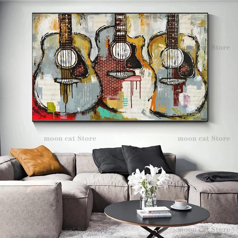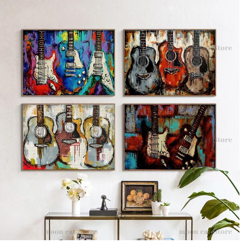 Граффити, абстрактный инструмент, гитара, холст, картина, модная музыка, электрическая/деревянная гитара, настенные художественные фотографии, домашний бар, магазин, декор