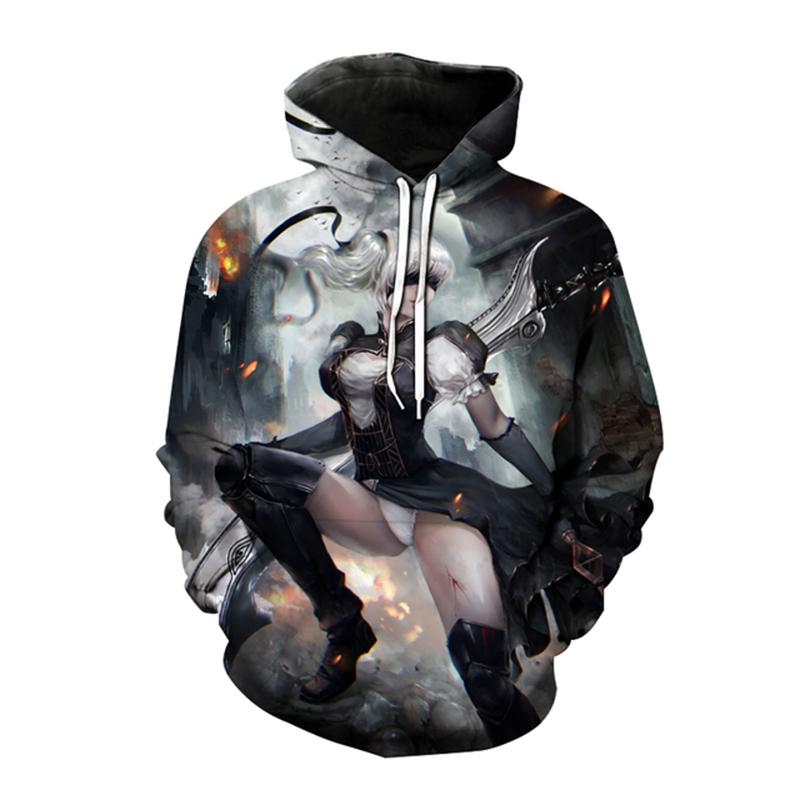 Толстовки с капюшоном Nier Automata, толстовка с 3D принтом аниме-игры для мужчин и женщин, модная толстовка большого размера, пуловер в стиле Харадзюку, пальто