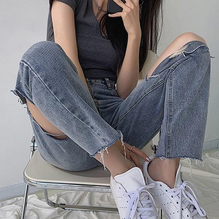Модные рваные джинсы 2023 оверсайз для женщин и прямые брюки с высокой талией — купить товар онлайн с бесплатной доставкой по всему миру!
