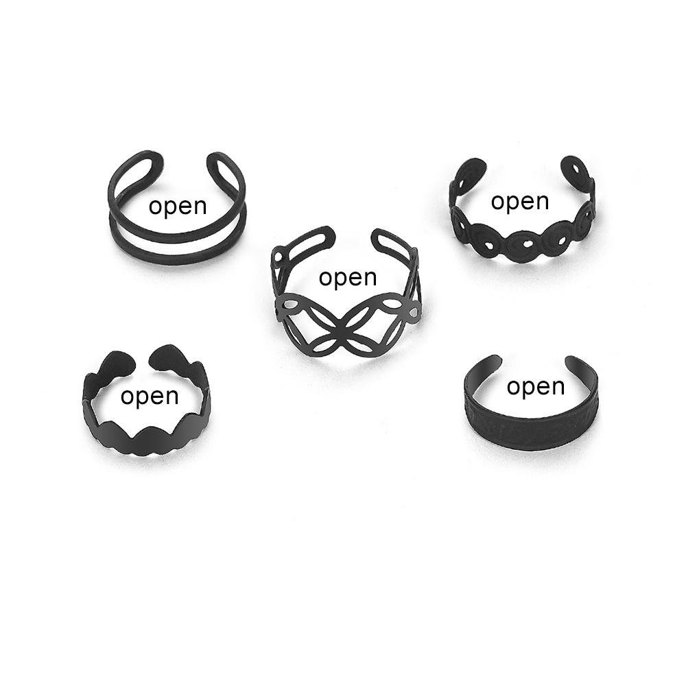 Модный простой набор черных колец для женщин, индивидуальные геометрические открытые кольца