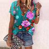 Женский топ, летний новый модный топ с яркими цветами и принтом розы, повседневный топ на молнии с v-образным вырезом и короткими рукавами