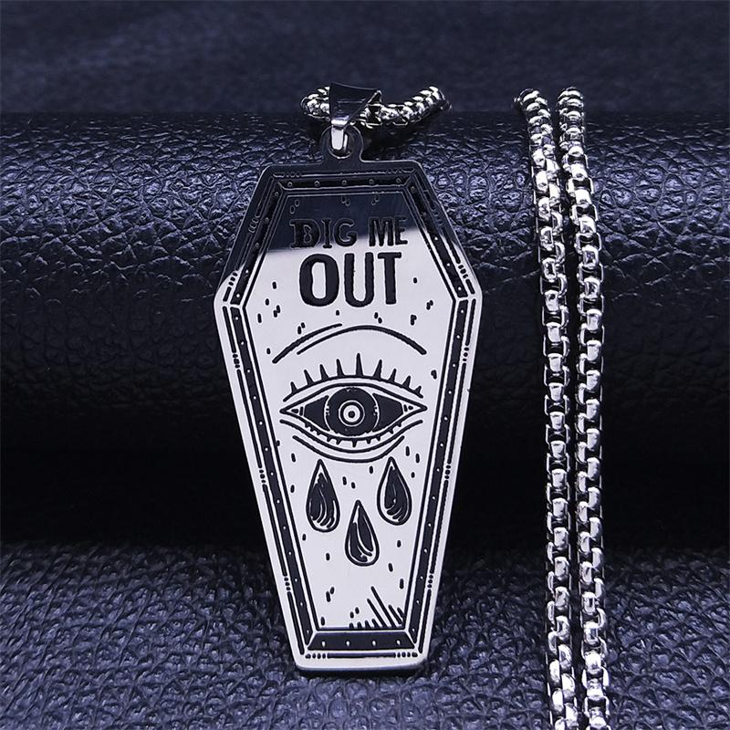 Модные ожерелья с глазами, темный панк, выкопайте меня, гроб, глаза, слезы, ожерелья из нержавеющей стали, мужские ожерелья с сглаза, серебряный цвет, цепочка, ожерелье, ювелирные изделия