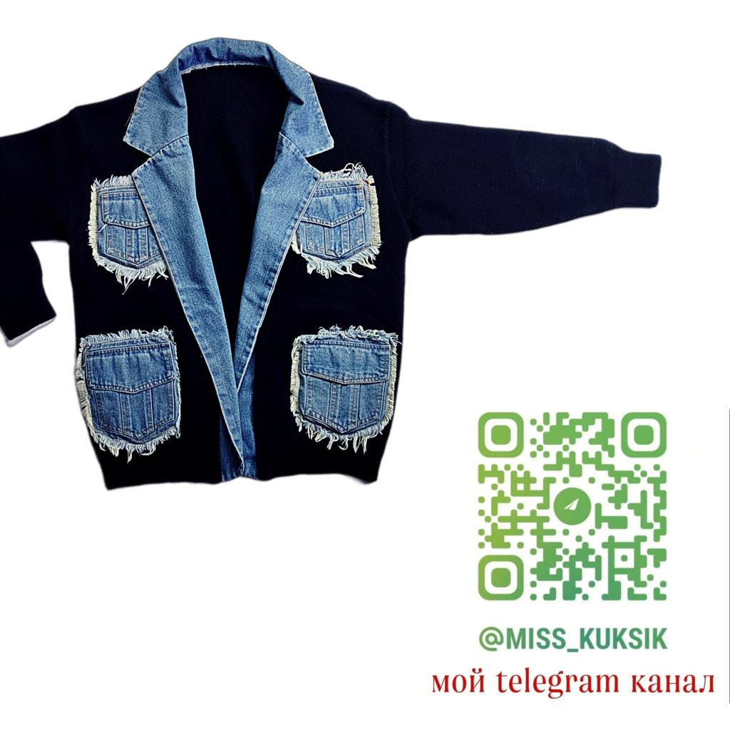 Кардиган с джинсой🩵 *все ссылки на вещи, которые используются в этом обзоре можно найти только в моём Telegram канале Miss_Kuksik Ищите пост по тегу #джинсовый_карман И не забудьте подписаться ✔ Привет! Как странно, почему до этого дизайна раньше не додумались? Ведь это гениально сочетать вязанные вещи с джинсовыми элементами! ‼️добавила разговорное видео, там много деталей. Ткань: Два типа ткани: Вязаная часть - скорей всего акрил, мягкий, плотный, теплый, чуть пушистый, тянется. Джинса - хлопок плотный, не тянется. Дизайн: Кардиган не застёгивается, спереди 4 накладных кармана - все функциональные. Оторочка из джинсы имитирует жакет, который вы как будто то бы надели с низу. Нюансы: Для себя не нашла. Качество: Супер, сшито все замечательно. Сезон: Осень/зима/весна Цвет: Черный + голубой Размер: На мне единый размер. Мои параметры: рост 172 см 98/76/106 см Детали: Длина 70 см Плечи 54 см Длина рукава 46 см ОГ 118 см ОТ 110 см Резюмирую: На мой взгляд - эта вещь оригинальная, теплая, весьма функциональная и легко адаптивная в повседневный гардероб. Буду рекомендовать! Берем! Я не прощаюсь, Miss_Kuksik