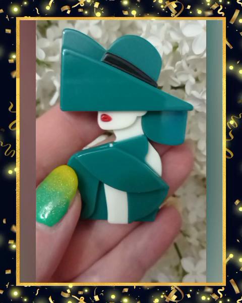 💚Брошь от бренда Blucome💚 💚Очаровательная и элегантная брошь❤👍! 💚Материал -акрил. Глянцевая! 💚Форма - фигура женщины в шляпе! 💚Тип застёжки - булавка из цинкового сплава. 💚Брошь тяжёленькая, подойдёт только для одежды из плотных тканей! 💚Из двух цветов выбрала зелёный 💚, есть ещё оранжевый 🧡! 💚 Приобретала для зелёного пиджака, но на белом мне понравилось больше! На контрасте смотрится интереснее!Хотя в тон тоже неплохо💖 💚Украшение прекрасное! Рекомендую ❤любительницам таких брошей! 🤗