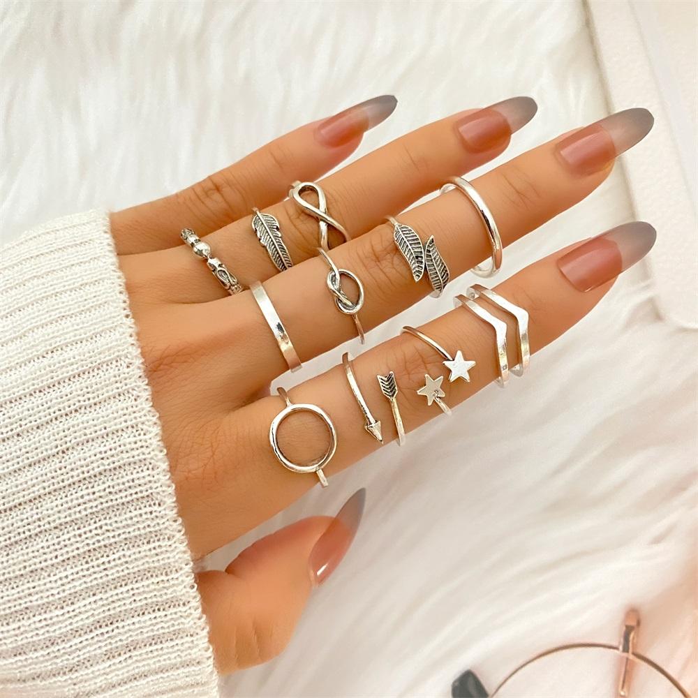 Набор колец в богемном стиле в стиле ретро, звездный лист, любовь, простое кольцо, женские модные украшения