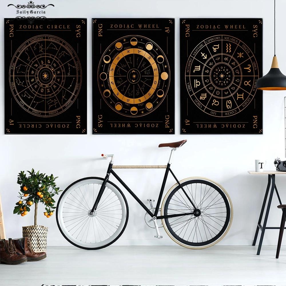Гороскоп Гадание Плакат Астрология Зодиак Фаза Луны Символы Печатает Холст Картины Настенные Художественные Фотографии Ведьма Декор Для Гостиной