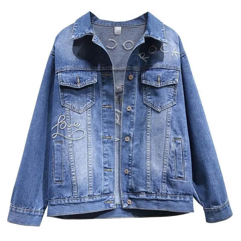 Плюс размер M-5XL ковбойская куртка женская осенняя вышивка свободная баска повседневное пальто — купить товар онлайн с бесплатной доставкой по всему миру!
