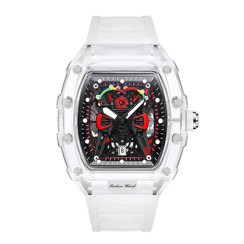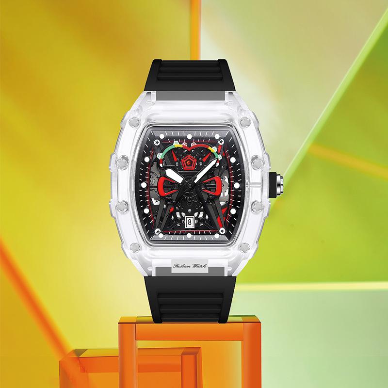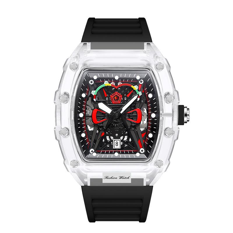 KIMSDUN Индивидуальные кварцевые часы в форме бочонка. Модные прозрачные часы. Водонепроницаемые часы для мужчин.