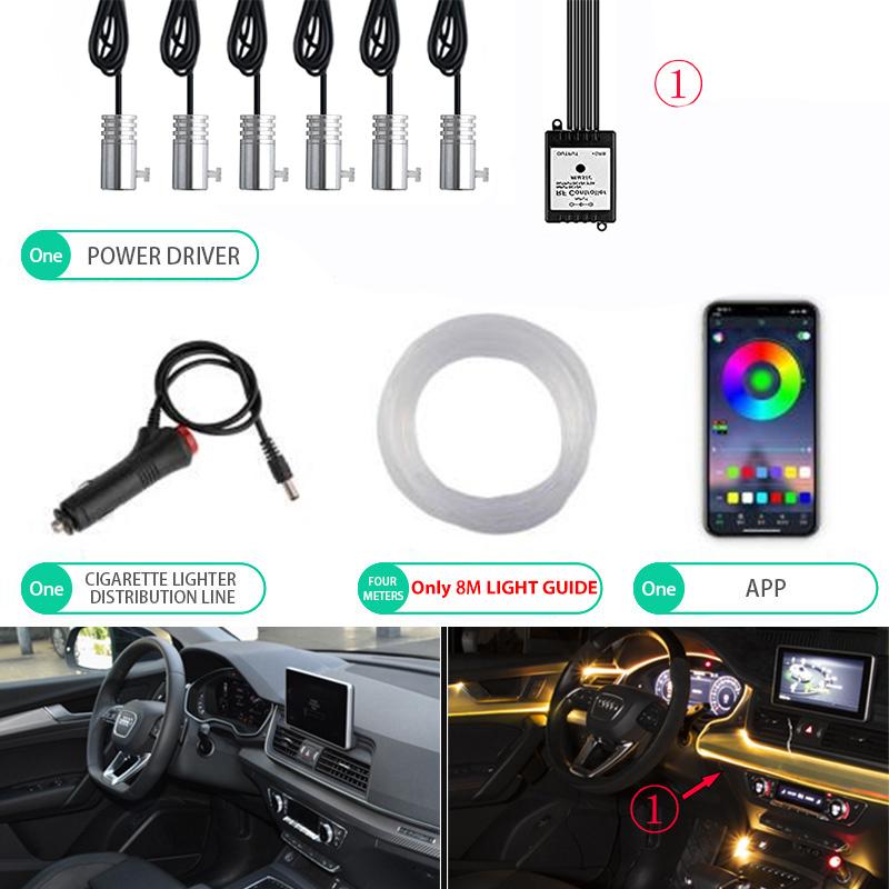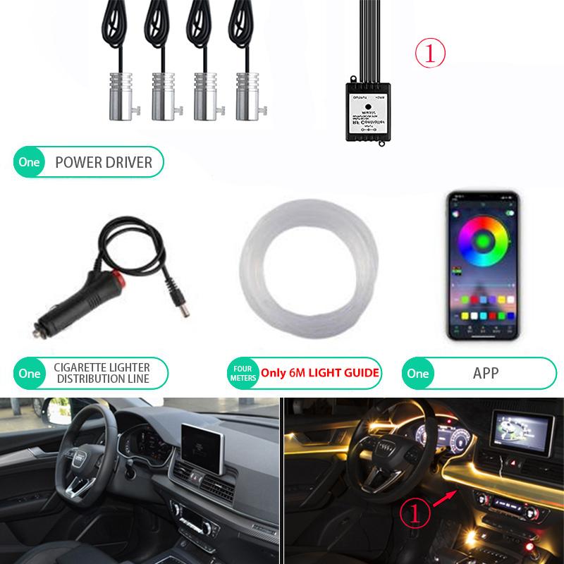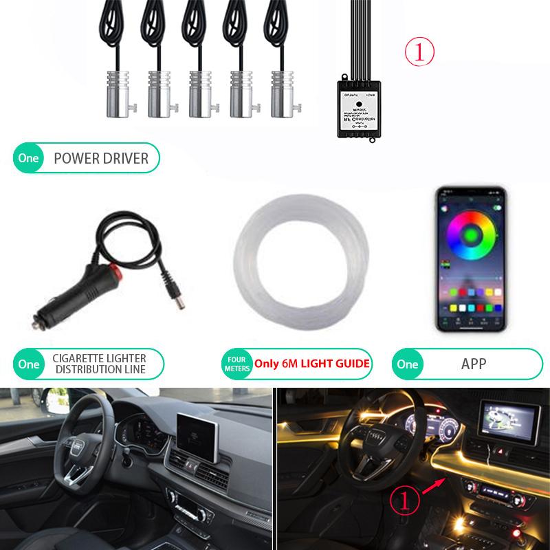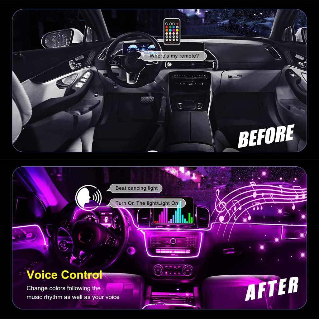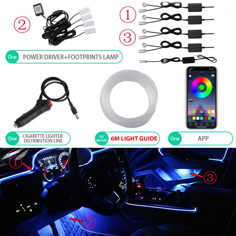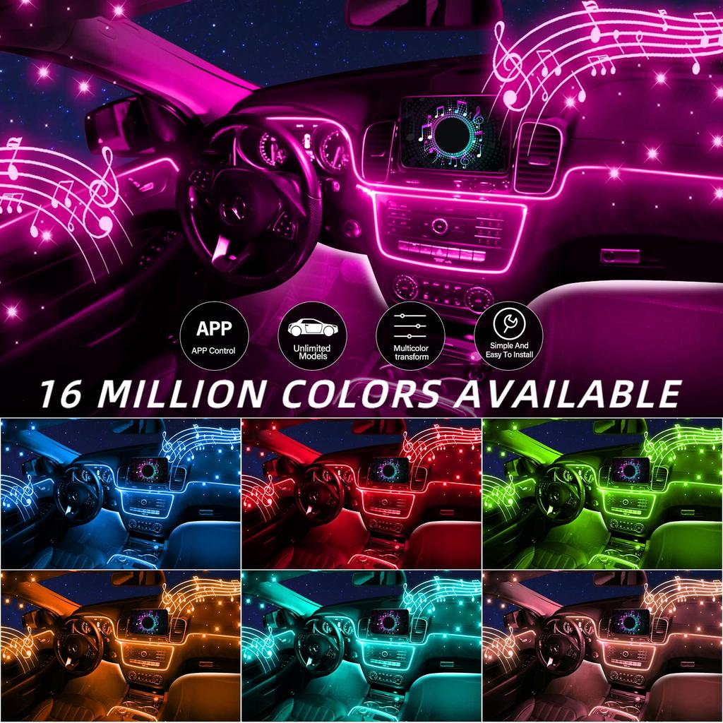 Неоновые автомобильные светодиодные внутренние светильники RGB окружающего света, оптоволоконный комплект с приложением, беспроводное управление, светодиодная автоматическая атмосфера, декоративная