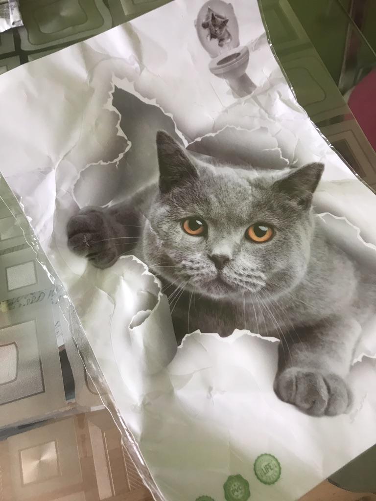 Наклеичка очень красивая, изготовлена из материала который можно протирать от пыли и грязи, что немаловажно и клеится хорошо. Конечно я не стала такую кисюлю на унитаз клеить а приклеила на стену, на работе, в обеденной зоне. Очень красиво получилось! Спасибо!