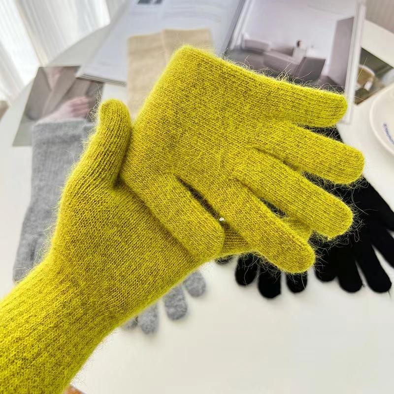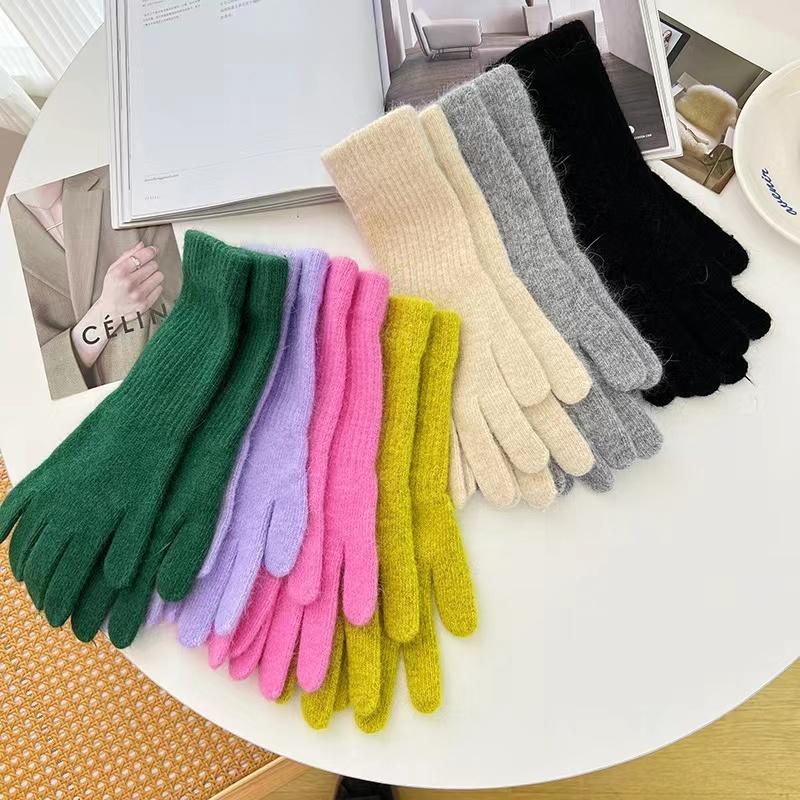 2022 корейские длинные перчатки женские зимние вязаные перчатки с кроликом на палец Рождество толстые теплые перчатки