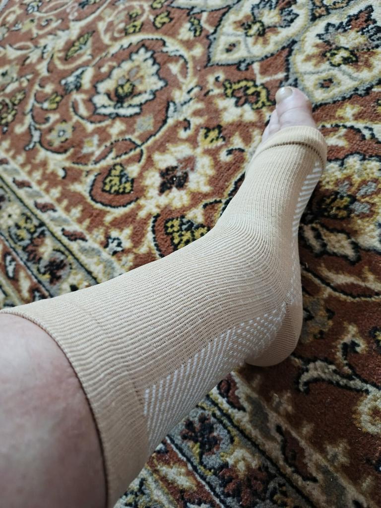 Поставила пять звёзд просто потому, что товар изготовили, собрали, отправили. Теперь о том, что мне понравилось, а что нет. Собственно, ничего не понравилось. У меня порваны связки на обеих ногах. Хожу с бинтами. Долго смотрела на эти носки и решила их купить. Товар мне категорически не понравился! Они очень-очень узкие. Натянула на ногу с большим трудом, и нога была без бинта! С бинтом их не надеть. Они очень тугие! Ноге не комфортно. А там, где пальчики вообще кошмар. Край носка на пальчиках лежит свободно, думаю, когда буду надевать обувь, край носка подвернётся. Изготовлены они по принципу " неважно какой стороной надевать". Советовать не буду, у каждого своя голова на плечах. Лично мне жаль тех денег, которые я отдала за эти чудо - носки.