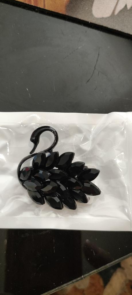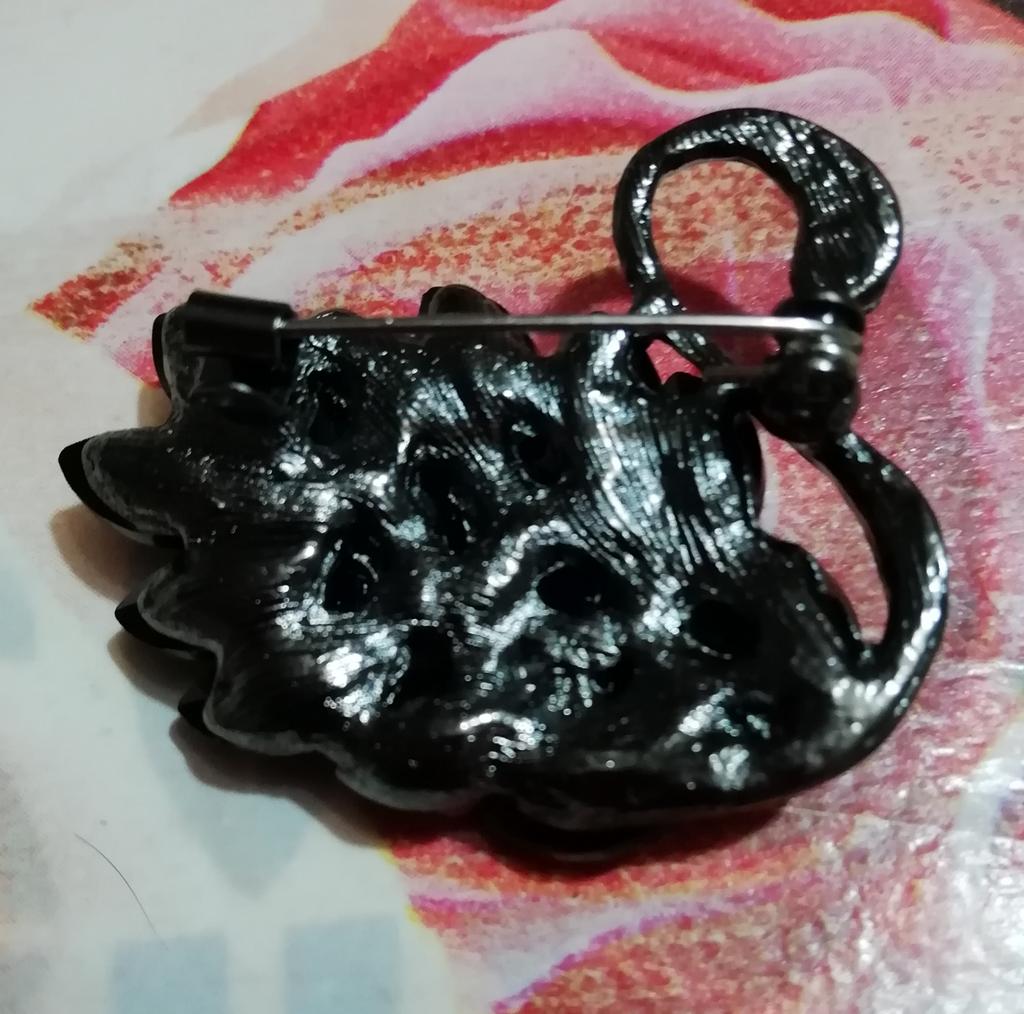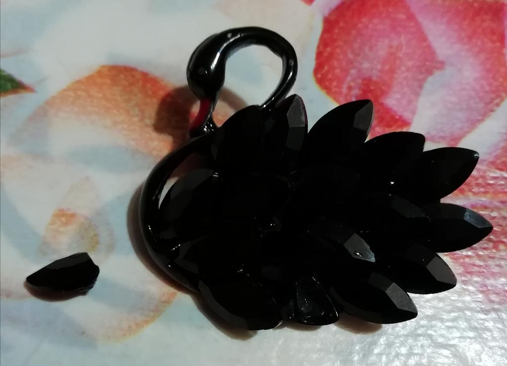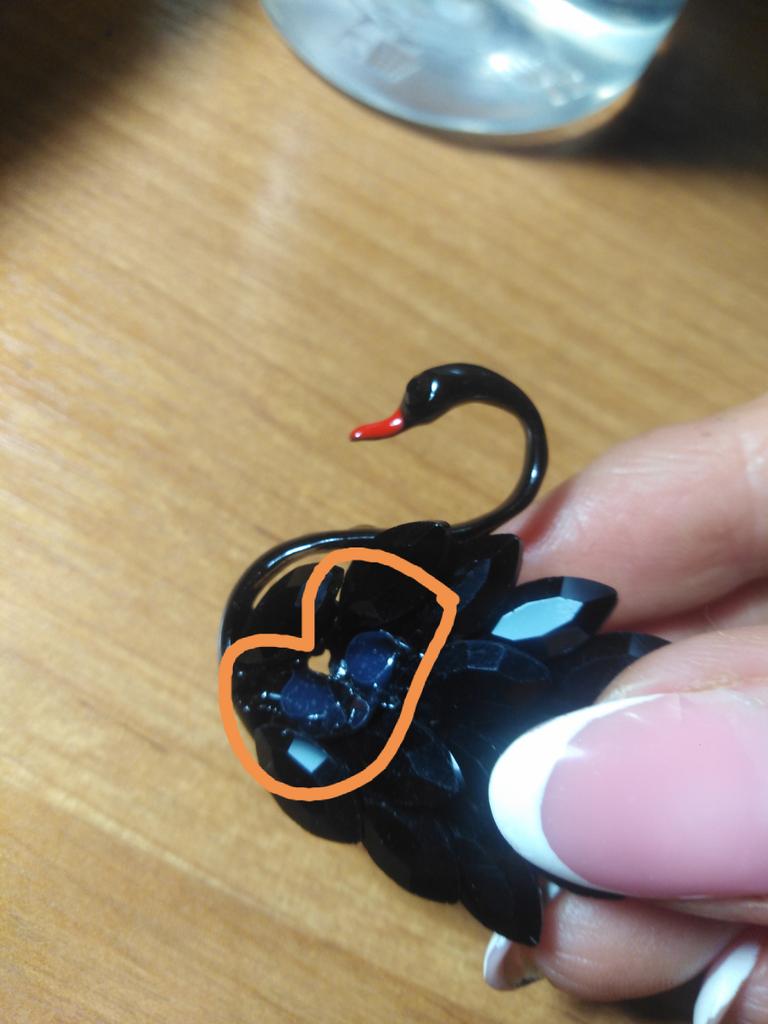 К сожалению, один из стразиков сломался. Из - за чёрного цвета плохо видно на фотографиях, но стразик сломался на пополам. Если бы отклеился, то можно было бы приклеить. Очень жаль, а сама брошка очень красивая. Добавляю: вернули 50% стоимости.