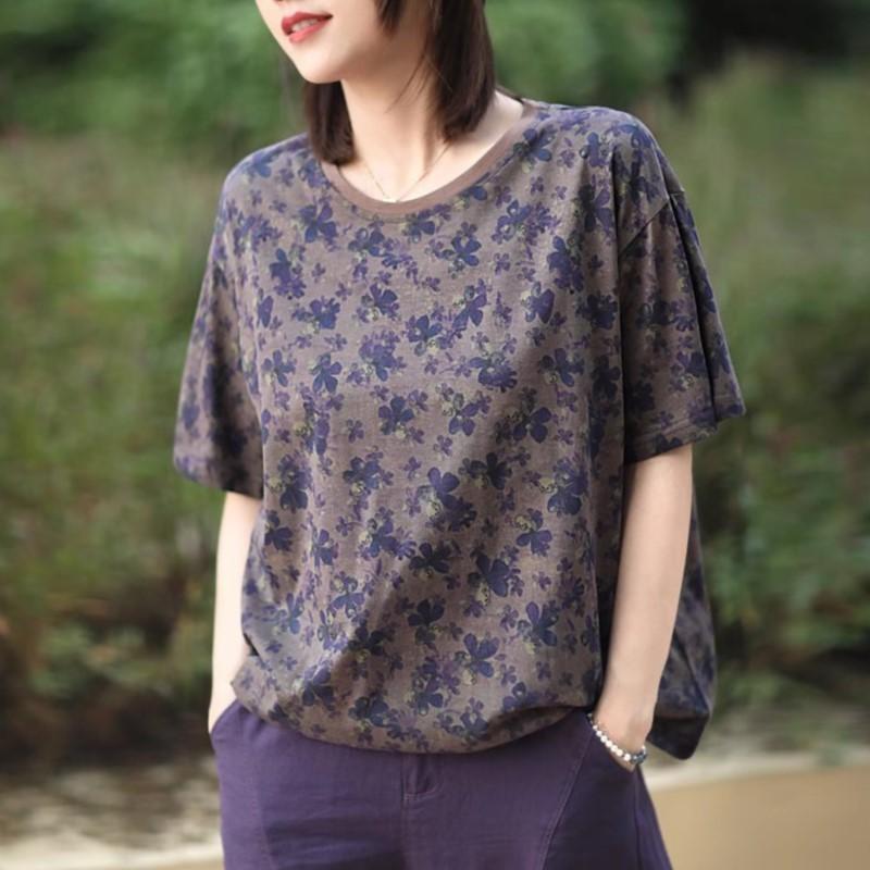 Johnature Женские футболки с цветочным принтом, летние футболки из смеси хлопка с круглым вырезом и короткими рукавами, повседневные футболки, женская одежда — купить товар онлайн с бесплатной доставкой до всему миру!