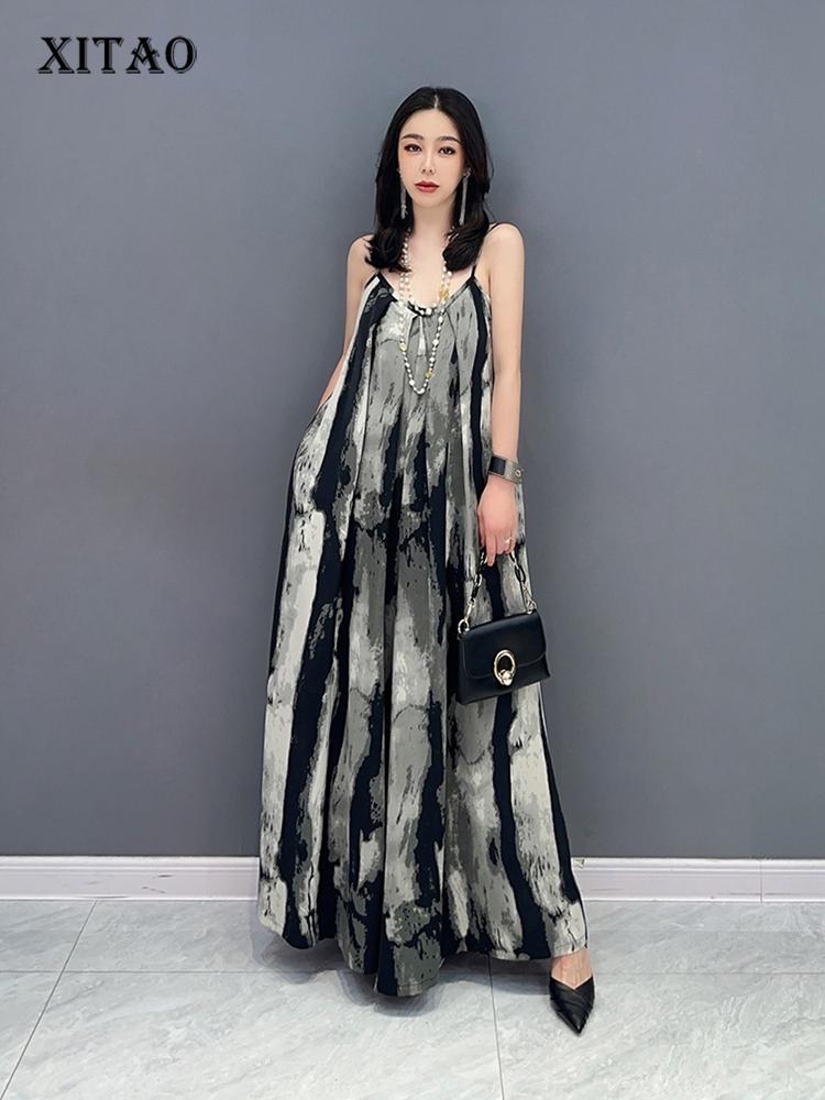 Xitao Модные свободные элегантные комбинезоны без рукавов с леопардовым узором Goddess WLD16530